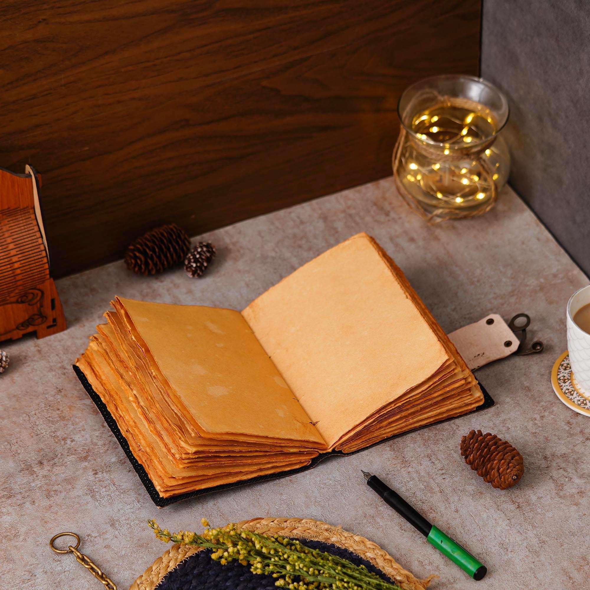 vintage handmade leather journal. Crafted with genuine leather, it radiates authenticity and charm, perfect for those who appreciate classic craftsmanship. The premium antique lock closure adds a touch of elegance and security, ensuring your thoughts and memories are safeguarded within its pages. Inside, you’ll discover 200 brown handmade pages, providing ample space for your musings, sketches, and stories to unfold. Whether it’s for journaling, sketching, or planning, this versatile journal is a timeless companion for your creative endeavors. Treat yourself or a loved one to this exquisite piece, a celebration of tradition and creativity