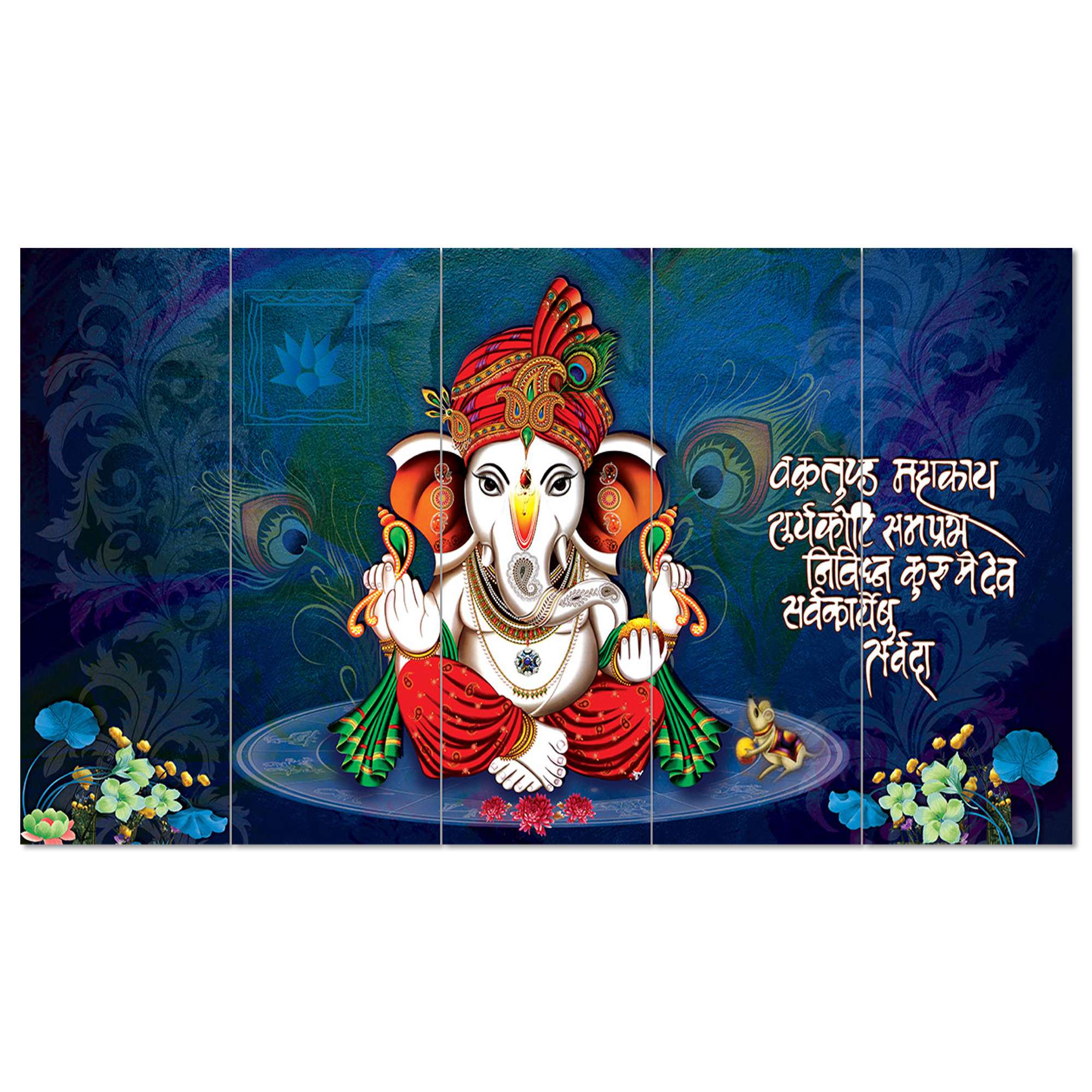 Saumic Craft Presents This Set Of 5 Amazing Paintings For Your Wall . The Painting Will Completely Change The Atmosphere Of The Room Whire It is Placed . The Paintimg Is Made On Heavy Wooden Board And Has A Digital UV Coating On It Which MAKES It Very Easy To Clean . Pricing Of The Product Is Made Very Reasonable From Our Brand As Per The Quality We Are Providing To Our Customers, We Assure That You Will Not Regret Your Purchase, Saumic Craft Is Well Known for Its After Sale Services And In Case If You Feel Some Problem With Any Of Our Product Than You Can Replace It For Free With No Additional Cost . This painting offers a stylish look to your wall as this piece includes three themes it is vastu and also have the essence of abstract and modern art which makes this peice unique and stylish . The 5 pieces wall painting is made with high-quality material, the HD quality print looks fantastic and bright it will not fade easily. With just few simple steps you can mount it to the wall. Thank You For Yor Purchase